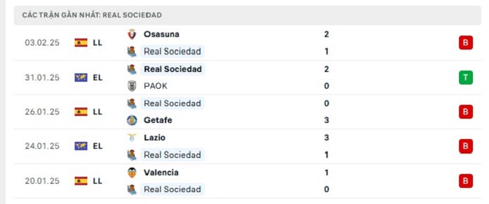 - Phong độ Real Sociedad