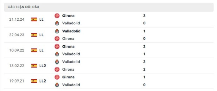 Lịch sử đối đầu của Real Valladolid vs Girona