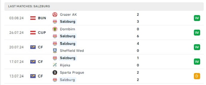 Phong độ gần đây Red Bull Salzburg vs FC Twente
