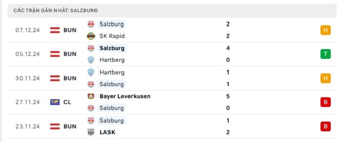 • Phong độ Red Bull Salzburg