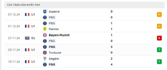 • Phong độ PSG