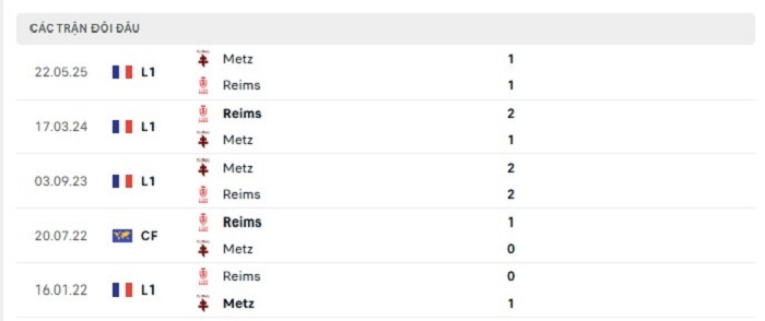 Thực tế có thể nhận thấy được giữa Reims và Metz trong quá khứ vốn cũng không có nhiều chênh lệch với nhau, thật vậy bởi trong tổng cộng 10 lần gặp nhau trước đây của hai đội thì chủ nhà thắng kèo châu Âu thắng 2 trong khi cũng thua 3 trước đối thủ, điều đáng nói có thể thấy được việc bất phân thắng bại theo kèo châu Âu của cả Reims và Metz trước đây là không hề dễ dàng với 5 trận đấu đã có kết quả hoà kèo, bởi vậy mà không loại trừ khả năng đội khách có thể tạo nên những khó khăn cho đội chủ nhà.