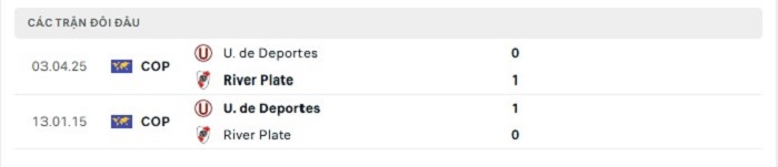 Thực lực giữa River Plate và Universitario Deportes trong những năm qua cũng có những điểm cân bằng đáng kể, thật vậy khi mà 2 lần gặp nhau trong quá khứ thì mỗi bên cũng đã thu về cho mình được 1 trận đấu thắng kèo châu Âu, điều này cũng có thể nhận thấy được giữa River Plate và Universitario Deportes ở trận đấu lượt về này cơ hội cũng sẽ chia đều cho cả hai đội, vì vậy mà khả năng hoà kèo châu Âu của hai đội cũng là điều có thể xảy ra.