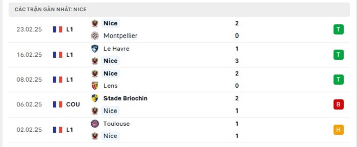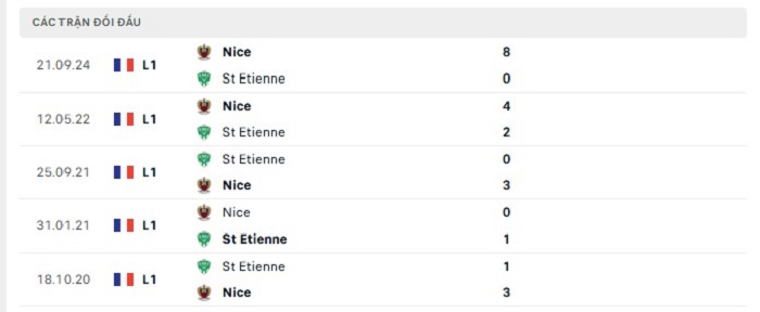 Lịch sử đối đầu của Saint Etienne vs Nice