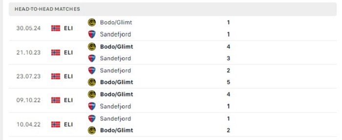 Lịch sử đối đầu của Sandefjord vs Bodo Glimt
