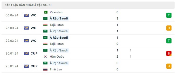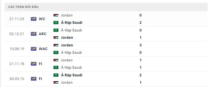 Lịch sử đối đầu của Saudi Arabia vs Jordan