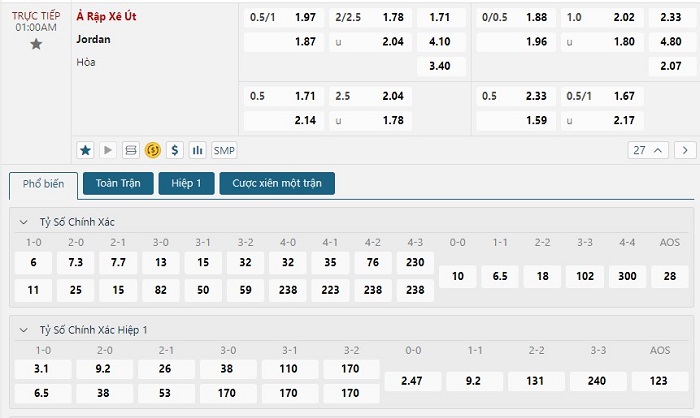 Bảng tỷ lệ kèo bóng đá trận đấu Saudi Arabia vs Jordan