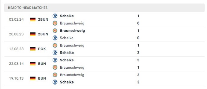 Thành tích quá khứ của hai đội thì Eintracht Braunschweig cũng có những bất lợi so với Schalke 04 tại thời điểm này, đây cũng là điều có thể thấy được khi họ có được tới 4 thất bại theo mức kèo châu Âu trong khi chỉ thắng 2 trước đối thủ. Hơn nữa con số 12 thất bại theo mốc kèo châu Âu chỉ trong 17 vòng sân khách ở mùa giải trước cũng có thể nhận thấy được yếu điểm của Eintracht Braunschweig ở mỗi lần hành quân xa nhà, vì vậy mà có thể đặt niềm tin vào đội chủ nhà ở trận đấu sắp tới.