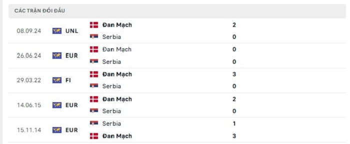 Lịch sử đối đầu của Serbia vs Đan Mạch