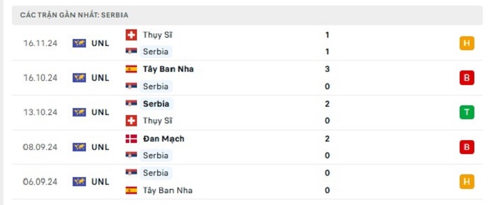 Phong độ gần đây Serbia vs Đan Mạch