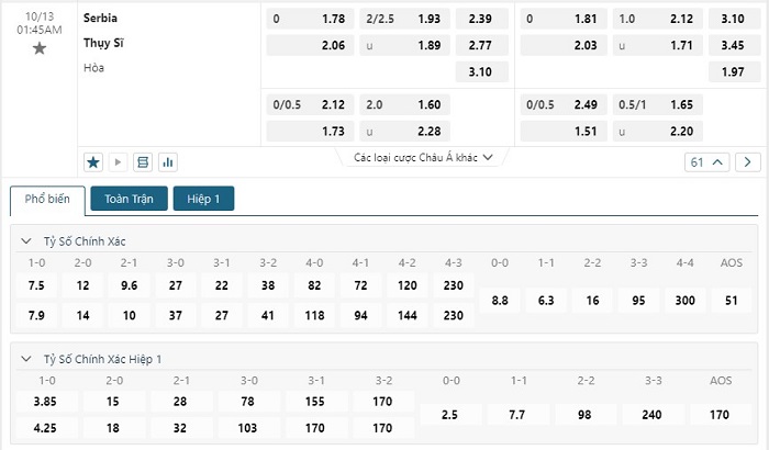 Soi kèo châu Á, kèo chấp Serbia vs Thụy Sĩ