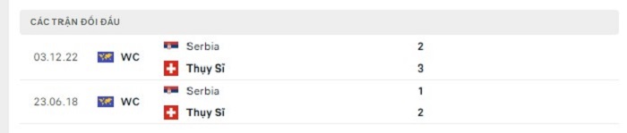 Bảng bóng đá trận đấu Serbia vs Thụy Sĩ