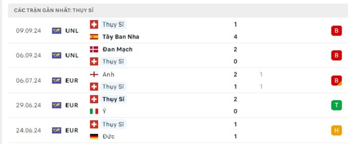 Phong độ gần đây Serbia vs Thụy Sĩ