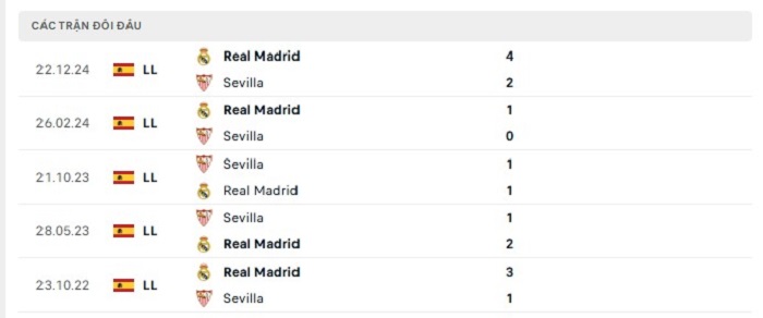 Lịch sử đối đầu của Sevilla vs Real Madrid