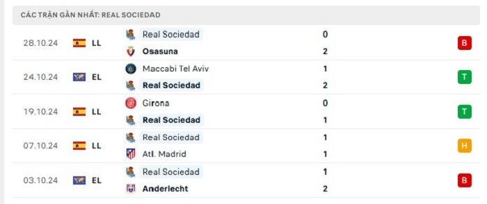 Bảng  bóng đá trận đấu Sevilla vs Real Sociedad