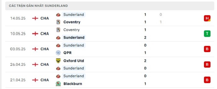 Phong độ gần đây Sheffield United vs Sunderland