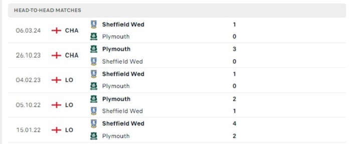 Lịch sử đối đầu của Sheffield Wednesday vs Plymouth Argyle