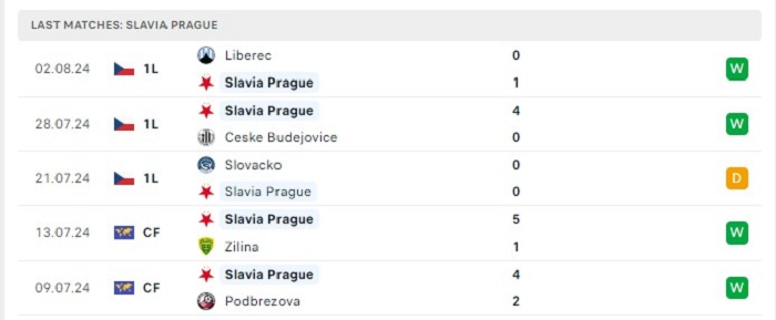 • Phong độ Slavia Praha