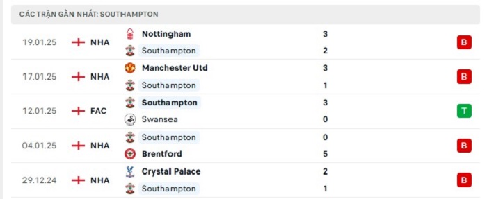 • Phong độ Southampton