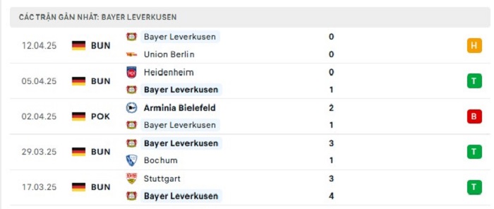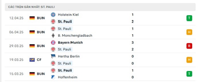 Phong độ gần đây St. Pauli vs Bayer Leverkusen