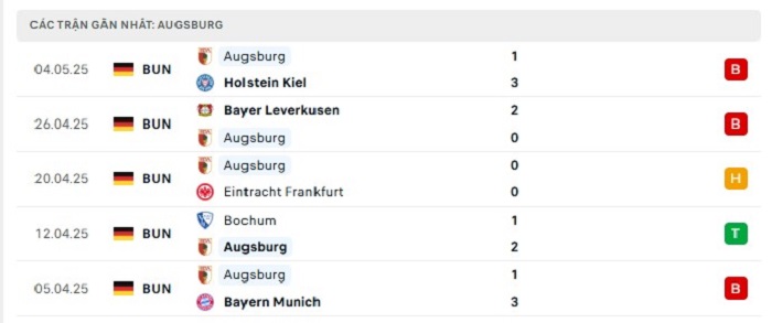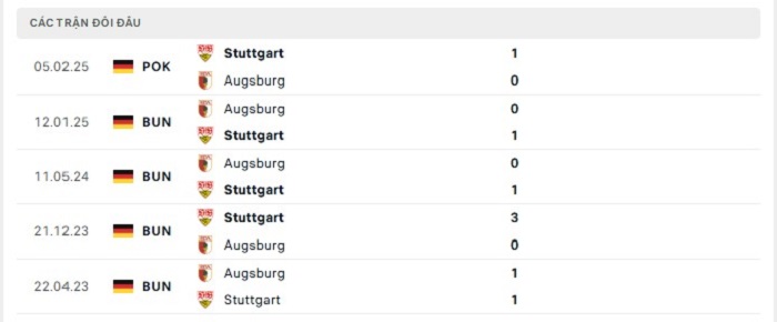 Lịch sử đối đầu của Stuttgart vs Augsburg