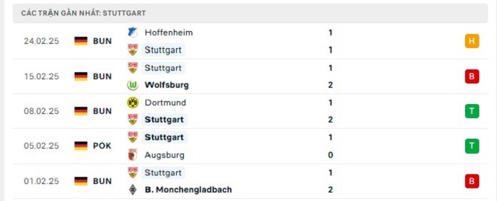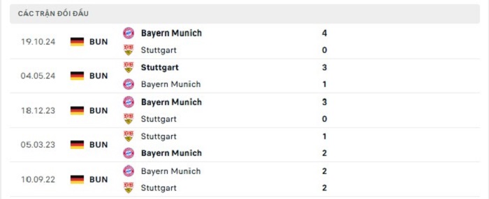 Bảng  bóng đá trận đấu Stuttgart vs Bayern Munich