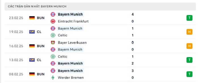 Phong độ gần đây Stuttgart vs Bayern Munich