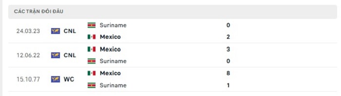 Thống kê trong quá khứ những lần gặp nhau giữa Suriname và Mexico vốn cũng có khá nhiều bàn thắng ghi được, thật vậy khi mà khả năng ghi bàn của đội khách cũng đã thể hiện được những hiệu quả cho mình trước Suriname, chất lượng hàng công của Mexico đang thể hiện khá tốt trong khi với Suriname chất lượng hàng thủ của họ không thực sự chắc chắn, do vậy mà có thể kỳ vọng tới một trận đấu bùng nổ về mặt tỷ số ghi được cho cả hai đội.