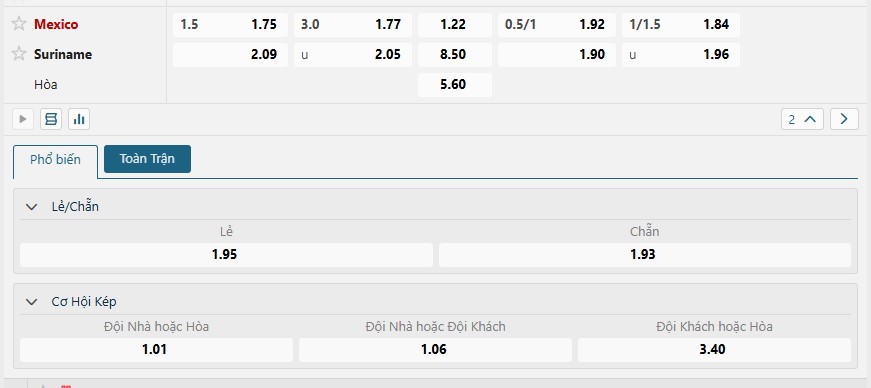 Soi kèo châu Á, kèo chấp Suriname vs Mexico