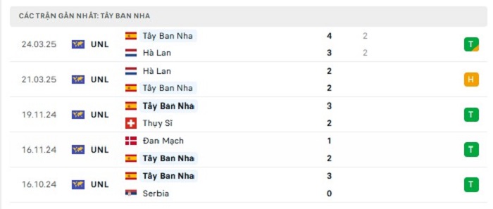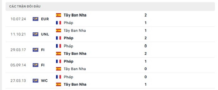 Phong độ gần đây Tây Ban Nha vs Pháp