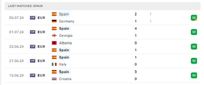 Phong độ gần đây Tây Ban Nha vs Pháp