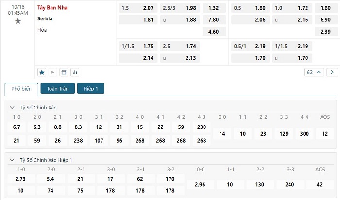 Soi kèo châu Á, kèo chấp Tây Ban Nha vs Serbia