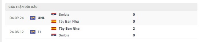 Lịch sử đối đầu của Tây Ban Nha vs Serbia
