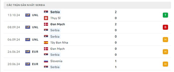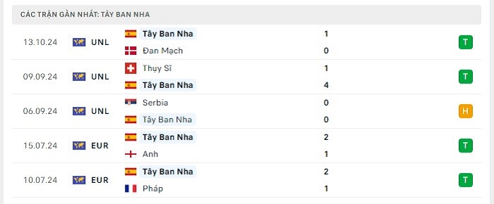 Phong độ gần đây Tây Ban Nha vs Serbia
