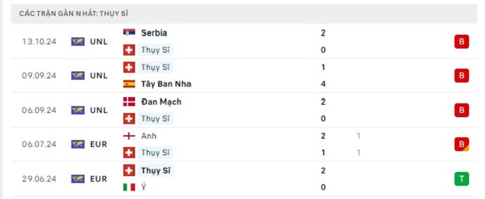 Bảng bóng đá trận đấu Thụy Sĩ vs Đan Mạch
