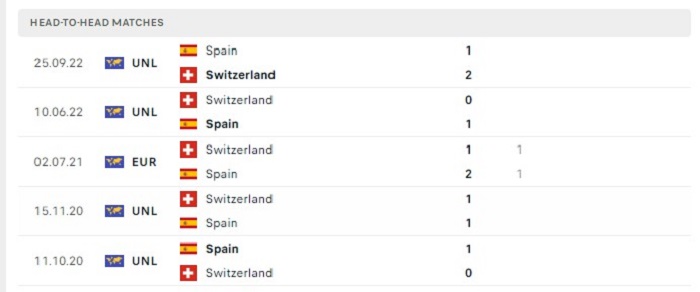 Những lần gặp nhau giữa Thụy Sĩ và Tây Ban Nha trong quá khứ vốn có tỷ lệ ghi bàn cũng không quá cao, đặc biệt là trên sân nhà của Thụy Sĩ khi cả 3 lần gặp nhau trước đây của hai đội đều đã khép lại với tỷ số cao nhất ghi được chỉ từ 2 bàn trở xuống, hơn nữa cả Thụy Sĩ và Tây Ban Nha gần đây đều gặp khó khăn trên hàng công khi đã không thể ghi bàn tại vòng đấu đầu tiên của mình, vì vậy mà tỷ số trận đấu sắp tới cũng sẽ không xuất hiện nhiều trong trận.