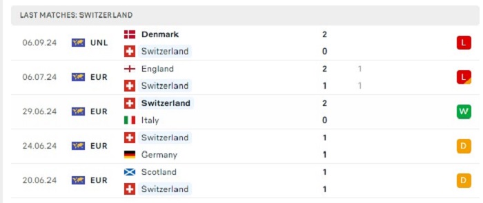 Phong độ gần đây Thụy Sĩ vs Tây Ban Nha