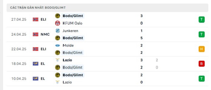 Phong độ gần đây Tottenham Hotspur vs Bodo Glimt