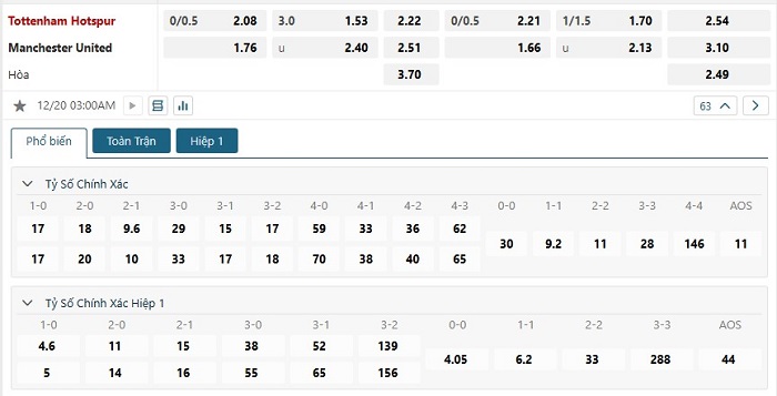- Dự đoán tỉ số trận đấuTottenham vs Manchester United
