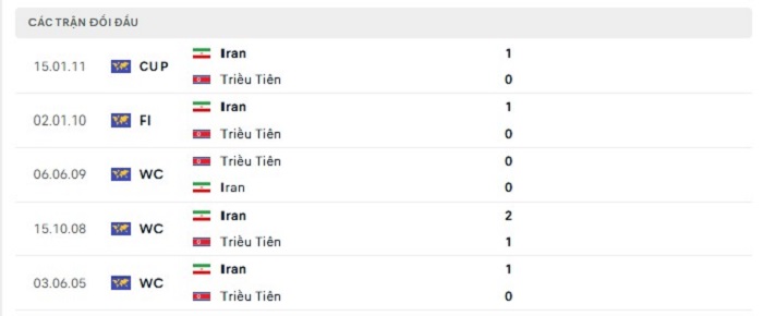 Bảng bóng đá trận đấu Triều Tiên vs Iran