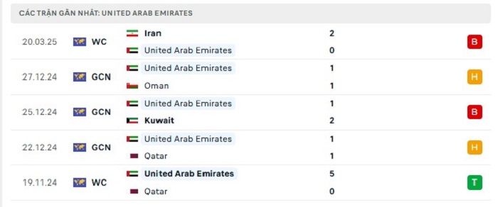 Bảng bóng đá trận đấu Triều Tiên vs UAE