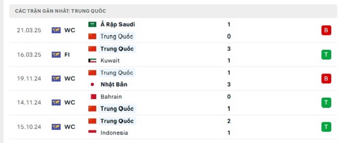 Bảng  bóng đá trận đấu Trung Quốc vs Australia