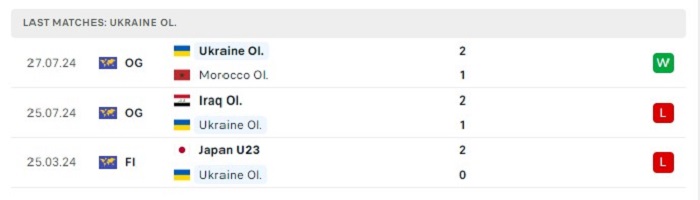 Phong độ gần đây U23 Ukraine vs U23 Argentina