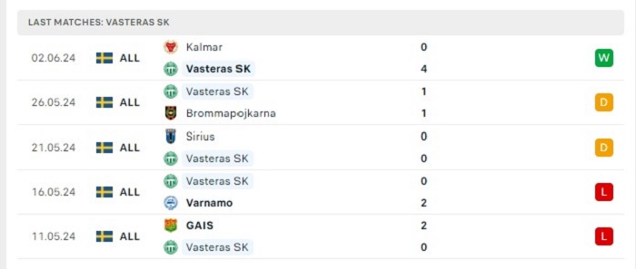 Phong độ gần đây Vasteras vs BK Hacken