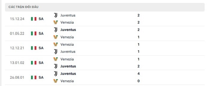 Venezia vốn cũng không có được những kết quả thuận lợi trước Juventus trong những năm qua, thật vậy khi mà mà cả 3 lần gặp nhau trước đây của hai đội thì Venezia cũng chỉ biết tới hoà và thua theo kèo châu Âu cũng đã cho thấy những mặt yếu kém của họ so với đối thủ của mình, do vậy mà với mục tiêu mà Juventus đang hướng tới như hiện nay của mình thì việc họ có một chiến thắng theo kèo châu Âu ở chuyến làm khách trên sân của Venezia ở vòng đấu cuối cùng của mình là điều nằm trong tầm tay của họ.