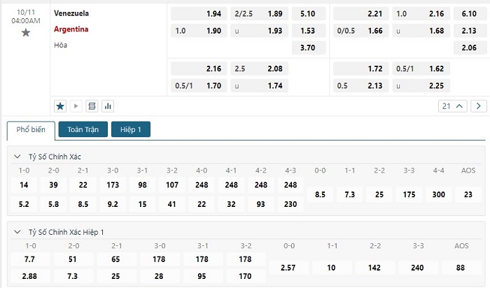 Soi kèo châu Á, kèo chấp Venezuela vs Argentina
