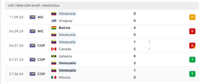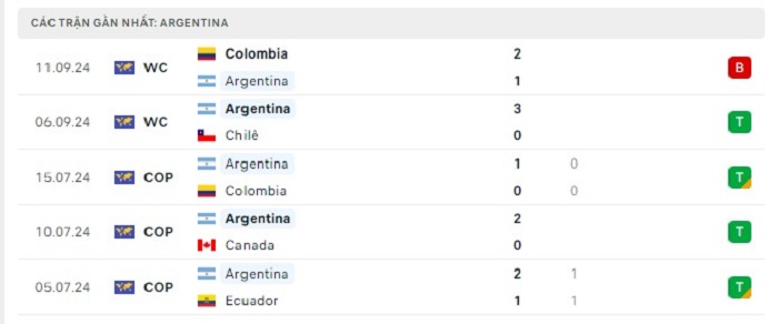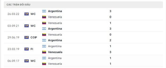 Bảng bóng đá trận đấu Venezuela vs Argentina