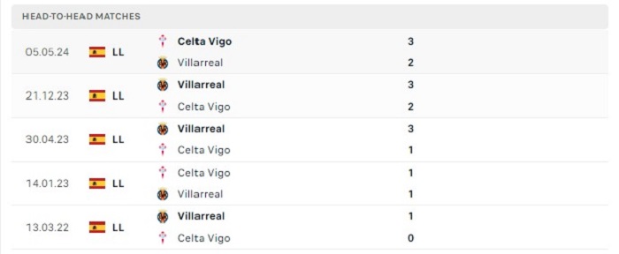 Lịch sử đối đầu của Villarreal vs Celta Vigo