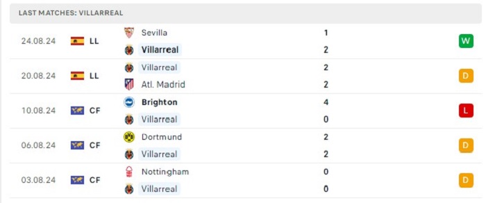- Phong độ Villarreal