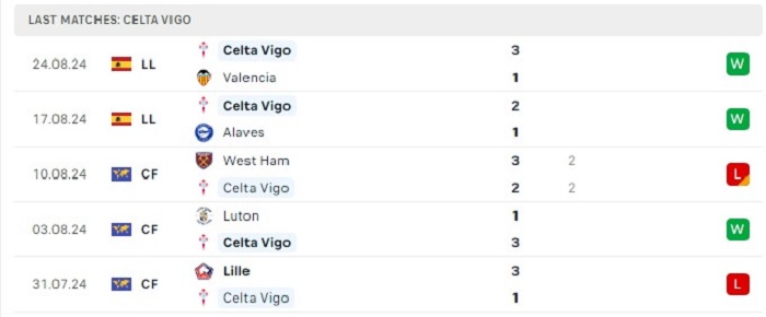 - Phong độ Celta Vigo
